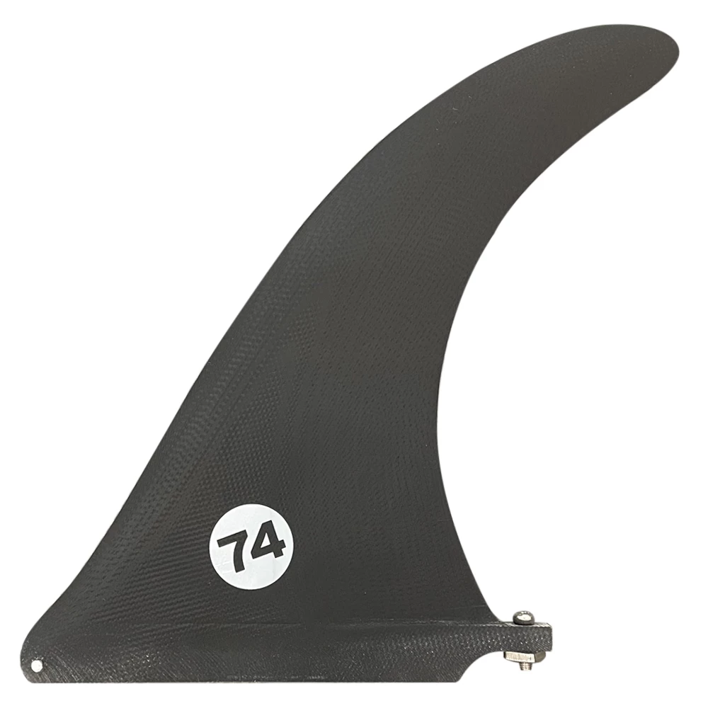 10.0″ Singlefin, the “Tiller,” by 74 Surfboards. The perfect fin for noseriding, to performance carving. Minimal flex since it’s a high quality fiberglass and resin construction. 7″ Base.