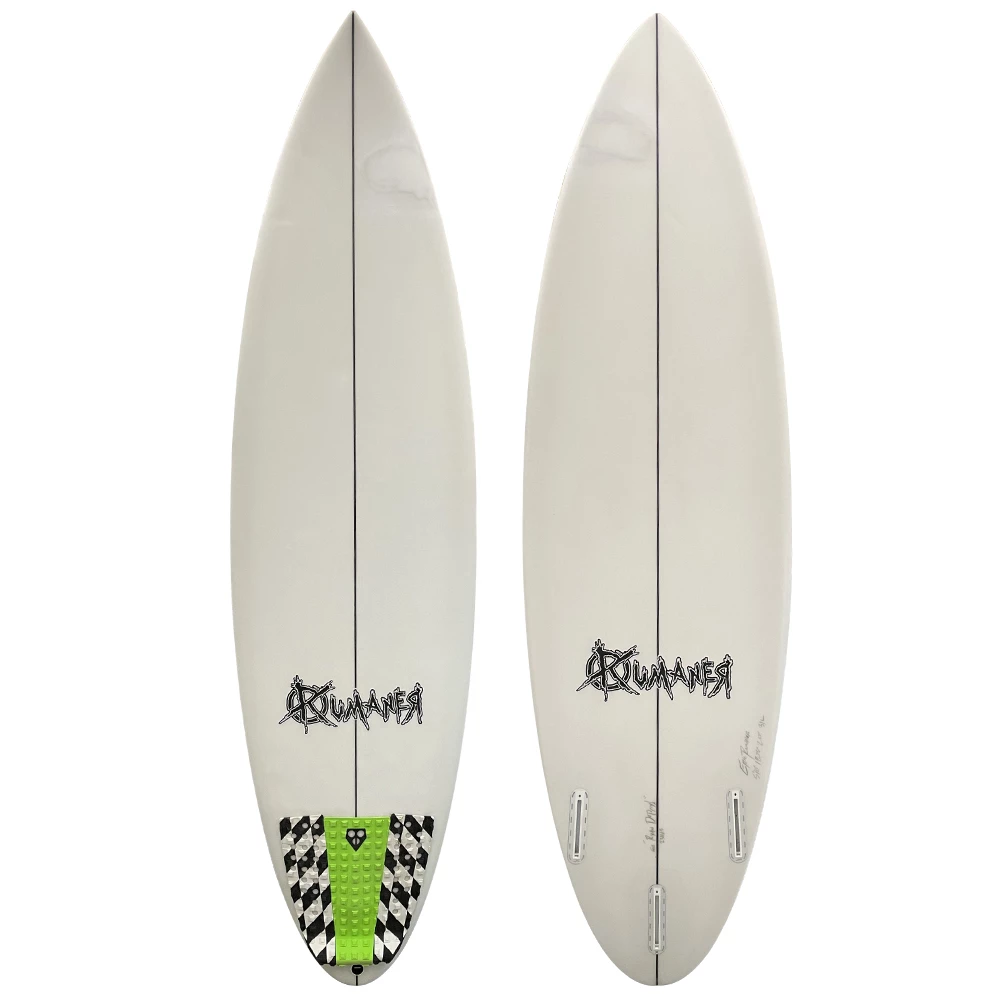 Condition: This Rumaner shortboard is in really great condition! The deck and bottom have light pressure wear, definitely below average. There was a significant repair towards the nose, which was professionally repaired by our Strayboards repair team! The repair turned out very smooth, flush, and reliable! Water tight and ready to dominate again! Besides the repaired area, this shortboard is actually in very good condition!