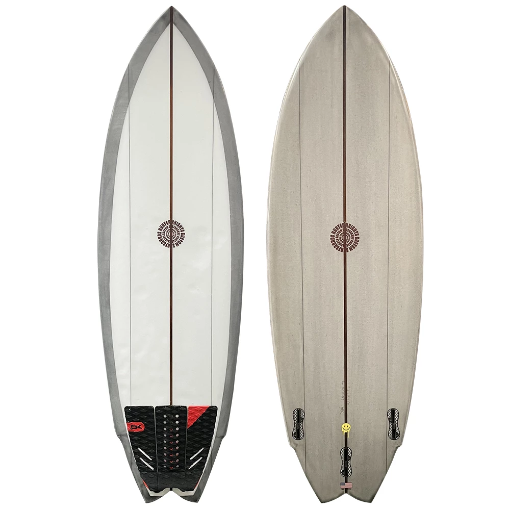 Condition: This board is in incredible condition! The deck has very minor and light pressure wear, and extremely light pressure wear on the bottom/belly, if any. No dings or repairs ever. This sled is crispy, and the grey resin tint is a very nice compliment to this boards vibe. The traction pad is also in perfect shape. This board is sooooo ready for summer!