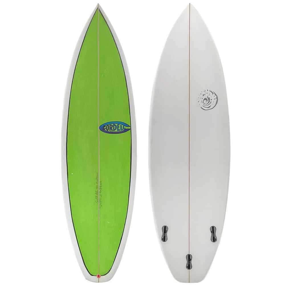This Cordell is a Brand Spankin New board that’s never been ridden! This was a custom order that was ordered incorrectly. The board has a relatively flat rocker with just a slight entry and nose rocker. Tail rocker is gradual with just a touch of kick to keep this nice and pivoty in the pocket. Bottom also has mild contours, going from a flat entry to single concave, to double concave, to flat out the back. This board is built for speed and critical turns in the pocket. Epic lime green deck with black pin lines too!Â