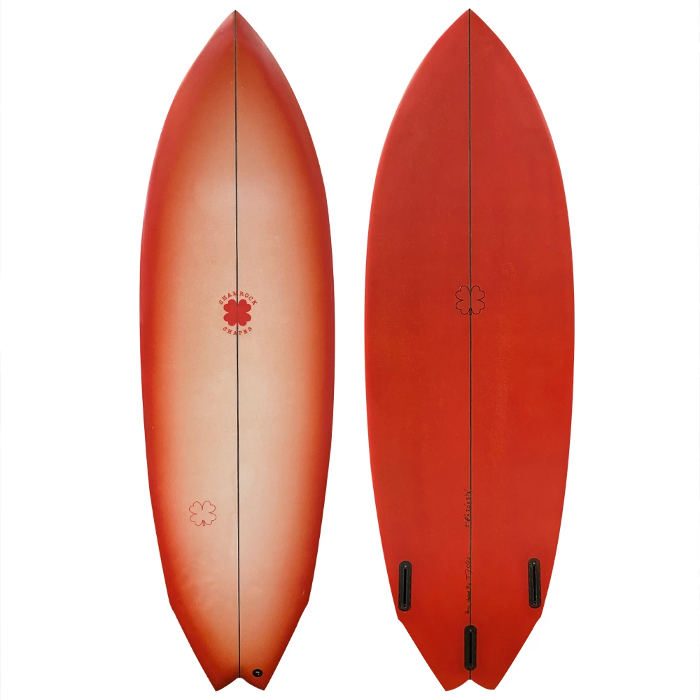 CONDITION: This custom shortboard by Shamrock Shapes is in exellent condition! The deck is in great shape with only a small number of light pressures – most of which are under the back foot. The belly is super clean with just a couple very light pressures. There was a small repair on the tail but nothing major. The repair was done professionally and is flush, smooth, and fully water tight. Ready for wax and surf!!