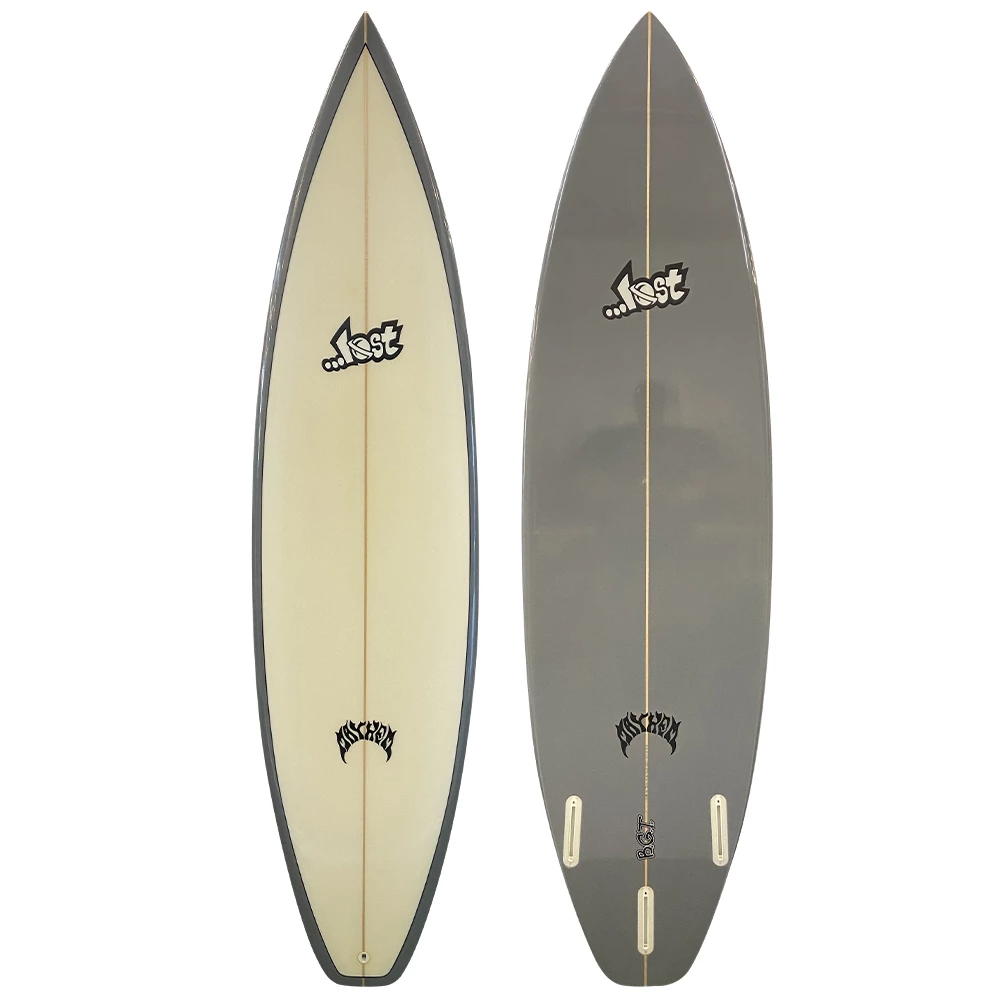 This Lost 6’8″ used step-up/gun is a perfect board for charging big heavy surf, or beginners looking to catch waves easily on a shortboard-type surfboard.
