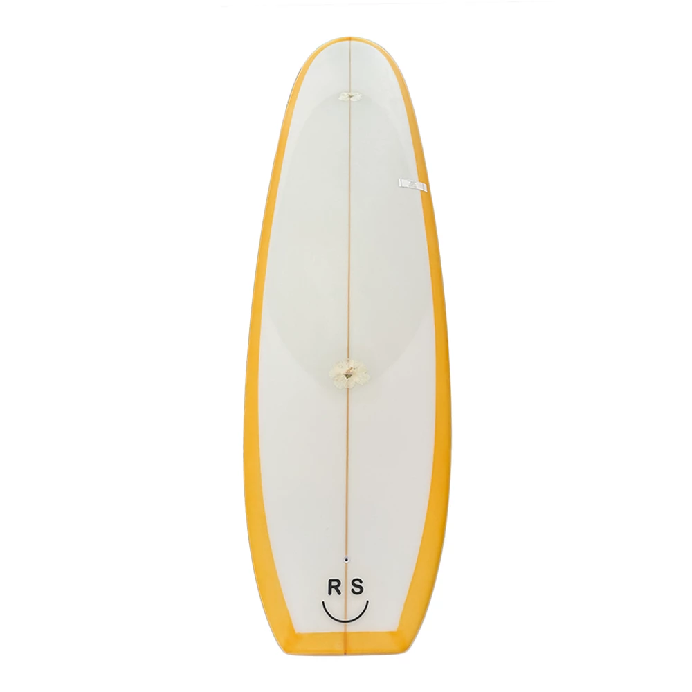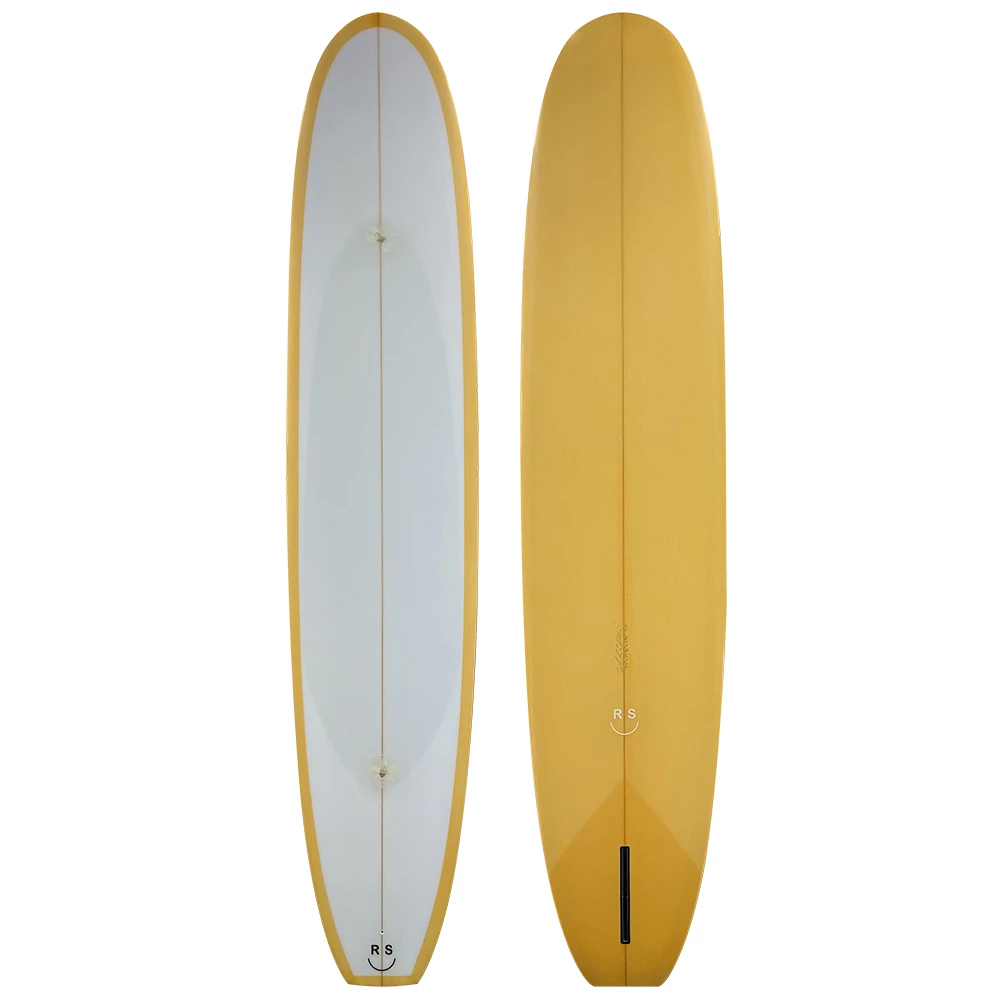 This “Cirrus” longboard by RS, is a beautifully crafted log with a very unique and special touch… Real Hibiscus flower inlays at the top and bottom of the deck patch, with a rustic yellow resin tint.