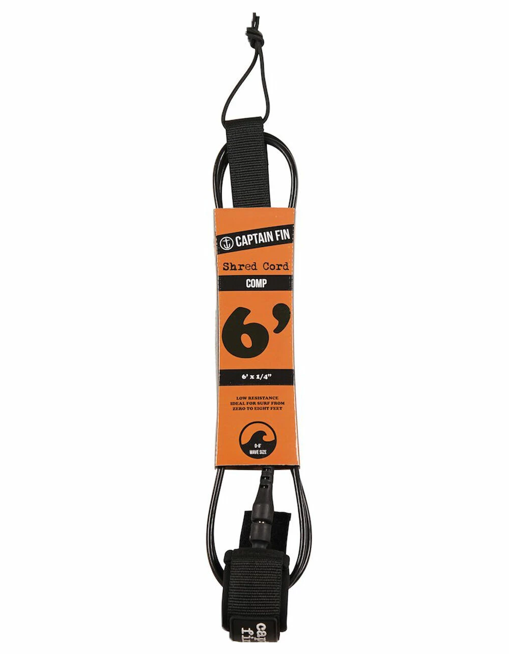 The Shred Cord Standard surfboard leash from Captain Fin. Featuring stainless steel anti tangle swivel system, internal key pocket, and triple wrap rail saver.