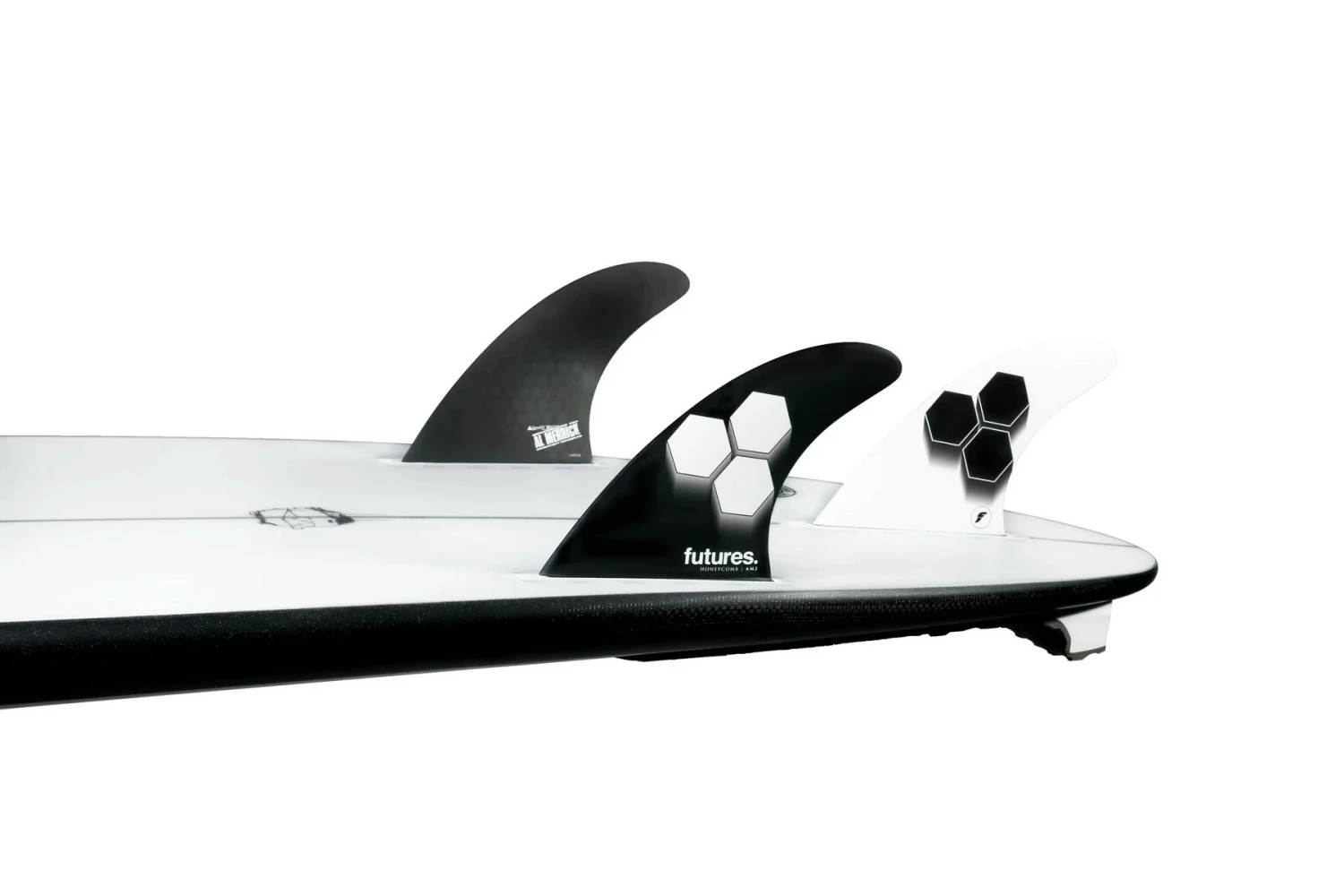 The AM2 Honeycomb designed by legendary shaper Al Merrick of Channel Islands Surfboards, is a large size thruster in the Rake template category. Featuring a balanced flex pattern, this fin’s wider base provides increased drive through turns, making it ideal for high performance surfing. The center fin is smaller than the side fins for increased maneuverability.