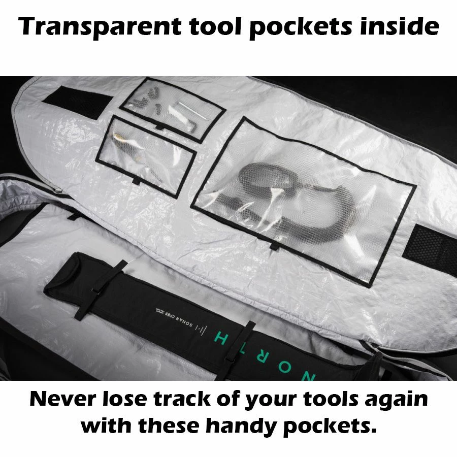 Wingboarding is an investment and the Star Wingboard Boardbag will protect your investment from dings, dents, and too much sun while transporting or waiting for the wind to come up. A sturdy construction with carrying handle for easy transportation and heavy duty zippers to ensure easy access and closure. If things are getting heavy you can take a rest and put down your bag on the floor without having to worry your goods get damaged. The 8mm padding will Help prevent damage and offer your board a cushy ride to and from the water. Keep everything protected and in place with these removable pockets. If you want to save some weight you can always leave them out. The Extra large air vents integrated in the fabric will help keep your gear in the best condition, even when it’s still wet.