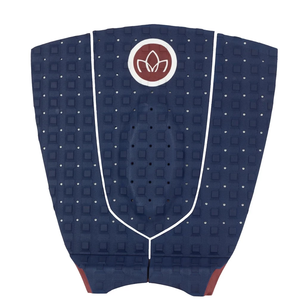 Our shortboard pad uses a symmetrical “square” groove pattern designed to create hold in any direction. Incorporated are perforation holes to add more flex and grip while reducing the weight of the pad. Along with this is a transitional tail kick that starts at a 45-degree angle then transitions to a vertical 90-degree angle halfway up the kick, creating maximum hold through turns. The corners of the tail pad are beveled to minimize water resistance off the tail of the board.